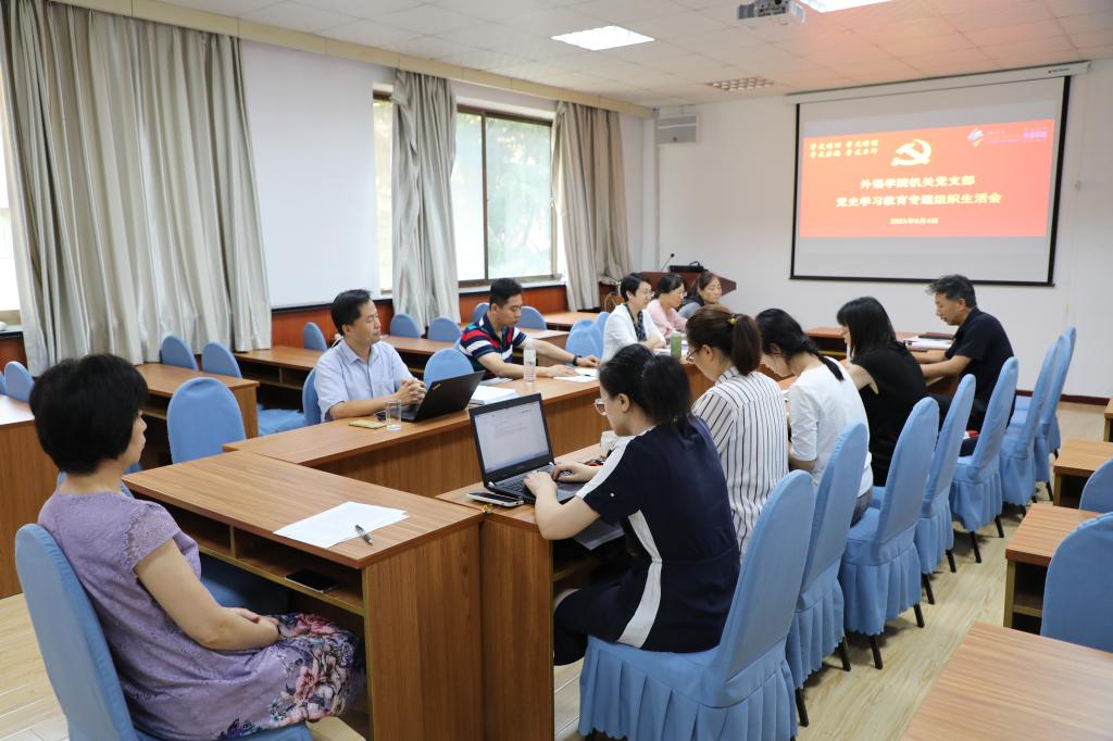 根据学校党委部署安排,9月4日上午,外语学院机关党支部在博文楼312会议室组织召开党史学习教育专题组织生活会。会议由机关党支部书记华登峰主持,院党委书记王传永、院长卞建华等机关党支部全体党员参加了会议。