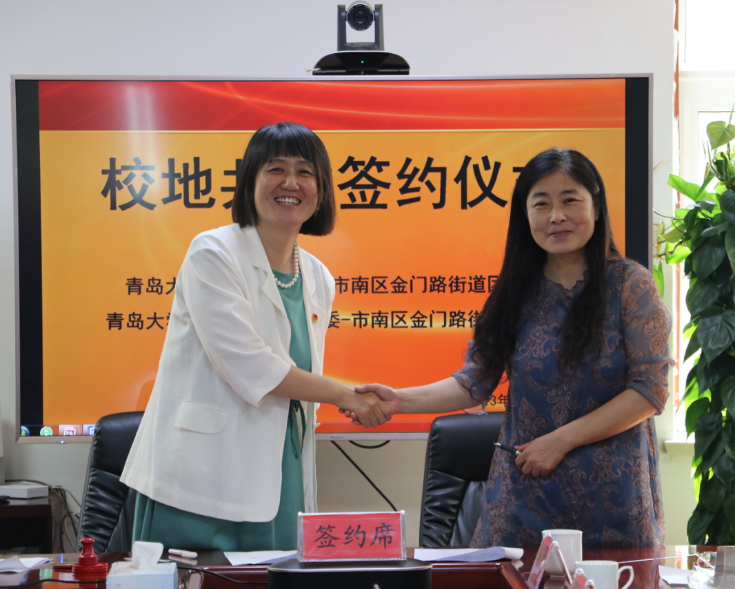 主题教育丨青岛大学外语学院团委与青岛市市南区金门路街道团工委举行校地共建签约仪式
