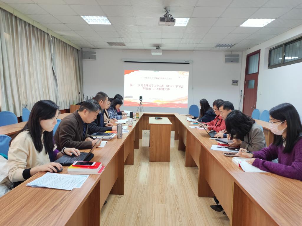 11月17日下午,外语学院党委理论学习中心组(扩大)学习会(第十三次)在浮山校区博文楼312会议室召开,学院党委书记周伟为学院班子成员、支部书记、系办(中心)主任、学科骨干、辅导员等80余名教职员工作党的二十大精神宣讲报告。报告会采取线上线下相结合的形式。班子成员、支部书记在线下参会。