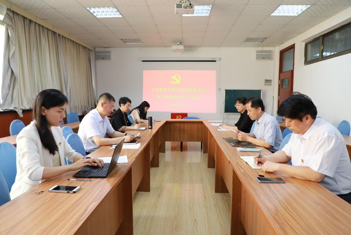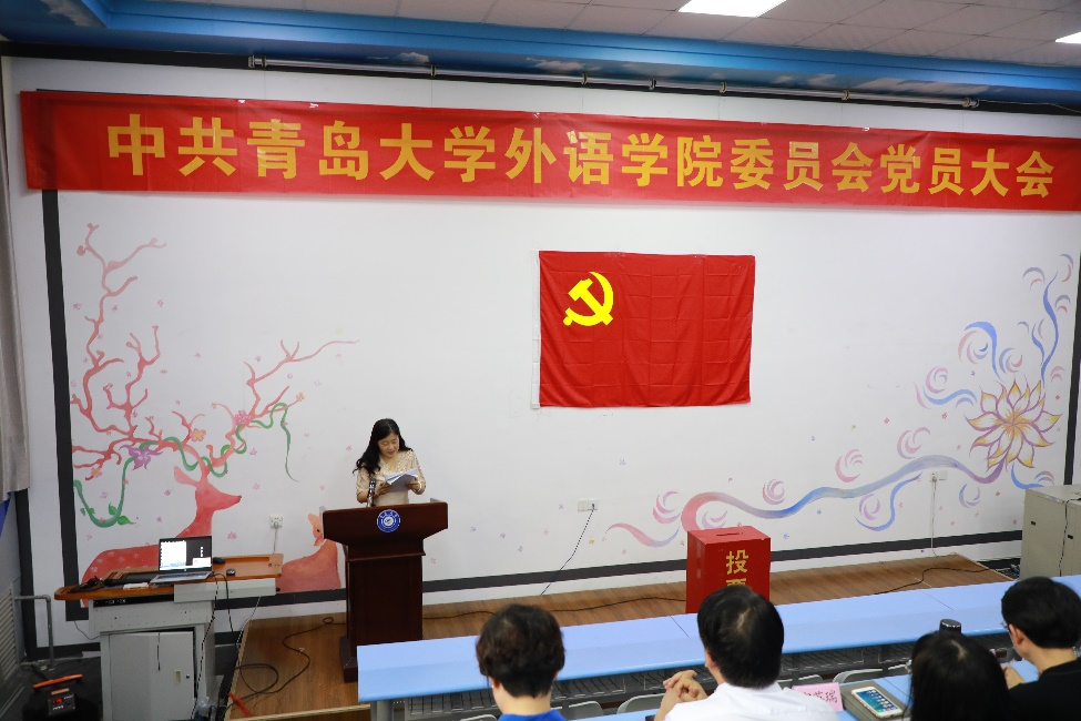6月23日下午,中共青岛大学外语学院委员会换届选举党员大会在浮山校区博文楼218胜利召开。校党委组织员张国辉老师出席会议,学院全体师生党员参加会议,院党委副书记王海青主持会议。
