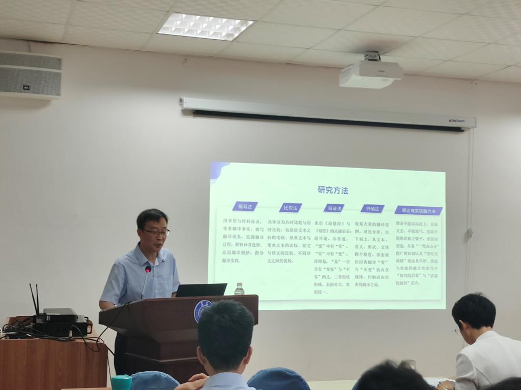 最后陈大亮教授总结了用典翻译“变”与“不变”的规律:用典翻译要识别用典文本与前文本之间的互文性关系,辨别用典与原典之间的变与不变,判断文本之间的关联度。用典人的意图决定原典文本与用典文本的关联度,关联度决定用典意义与原典意义的重合度。意义的重合度进一步影响译文形式的选择与取舍。形式跟着意义变,意义跟着文本变,文本跟着用典人意图变,用典人意图是用典翻译起决定性作用的最关键因素。