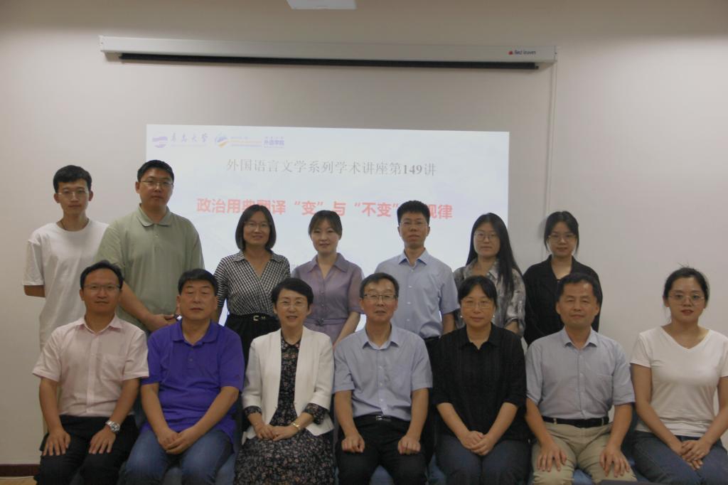 2023年9月18日上午8:30—11:00,苏州大学特聘教授,博士生导师,翻译学科带头人,天津外国语大学校外博士生导师,江苏省高校重点研究基地主任,中国英汉语比较研究会理事,典籍英译专业委员会常务理事,中央编译局国家高端智库重点研究方向核心团队成员陈大亮教授应邀为外语学院师生作了题为《政治用典翻译“变”与“不变”的规律》的学术讲座。本次学术讲座由外语学院卞建华院长主持,外语学院师生30余人参加了此次讲座。