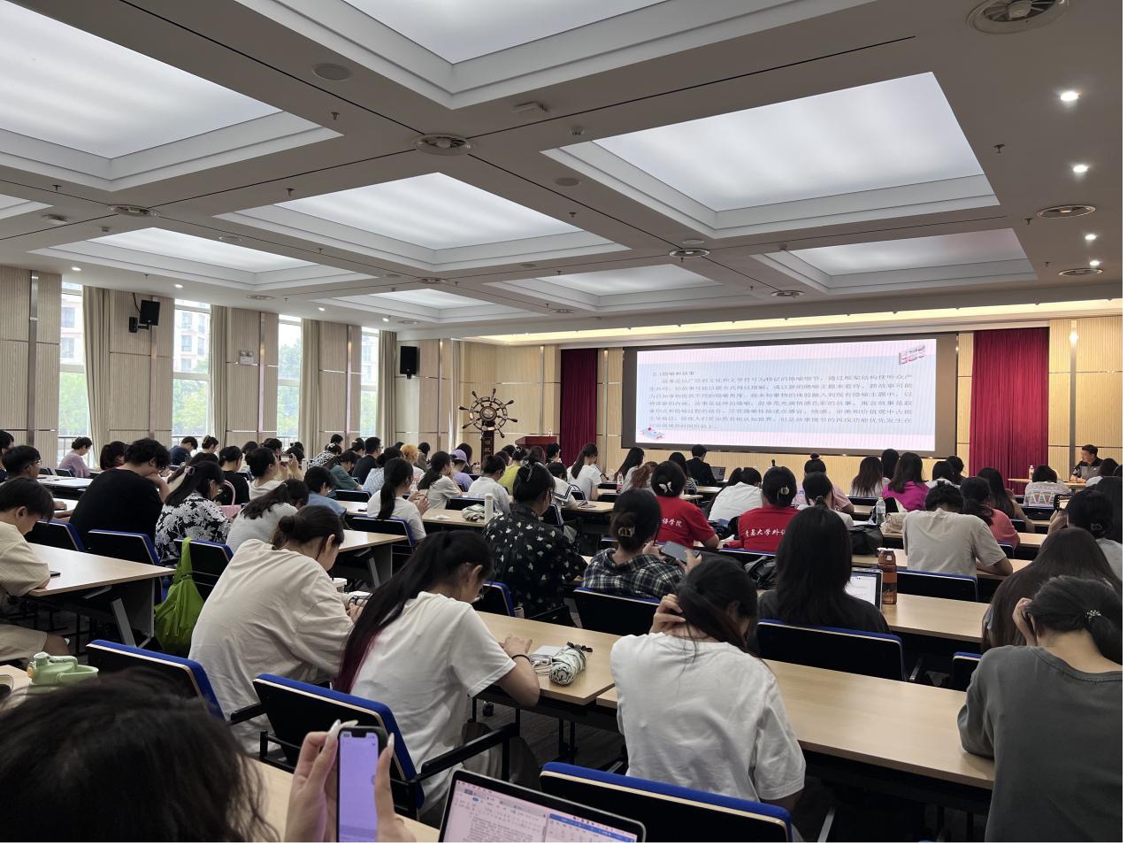 最后,孙毅教授对青岛大学外院学院的师生表达了真切的寄语:“人生就是一场马拉松,只要我们坚持写坚持投就能中,要记住踏实勤奋比聪颖聪慧更重要。”在热烈的掌声中,本次讲座圆满结束。