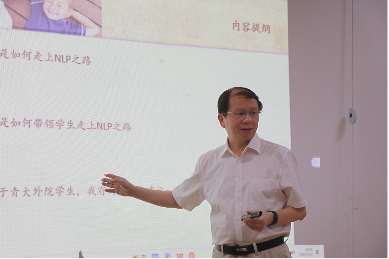 2023年5月22日下午,广西民族大学李学宁教授应邀为外语学院带来了题为“NLP之路”的精彩学术讲座。此次讲座由外语学院布占廷副院长主持,外语学院本科生和研究生50余人参加了本次讲座活动。