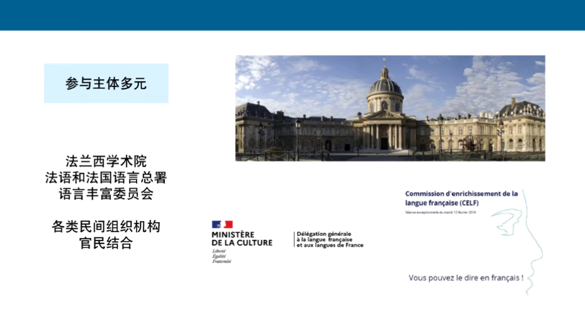 刘教授首先指出,对于法语专业的学生,在语言学习的过程中,不仅要掌握法语的听说读写等基本技能,更为重要的是要感受法国的历史与文化、国情与社会,而谈起语言政策、语言传播,法国是一个绕不开的国家,其历史悠久,特点鲜明,具有很强的典型性与示范性。刘教授以法语国家国际组织(OIF)在2018年所做的分析汇报为引入,向在座师生介绍了法语在如今世界上的现状与地位,并由此展开对法语国际传播政策的介绍与分析。刘教授的报告包括“法国语言政策核心内容”、“法语国际传播政策理念”、“法语国际传播政策实践”三个方面的内容。刘教授首先讲解法国现行的语言政策,并旁征博引地从历史及政治层面对该政策形成的原因进行了深入探讨,同时对法语国际传播政策的特点做出了总结。然后通过列举具体的法语国际传播政策理念与实践策略,刘教授对法语国际传播的指定主体、理念演变、政策实践、挑战与规划做出了逻辑严谨的论述,并由此展望汉语国际传播的政策与策略,为我国汉语的国际传播提供了宝贵的借鉴和启示。