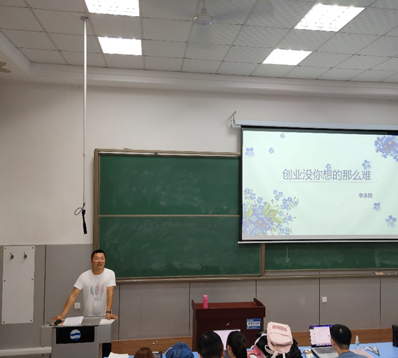 讲座开始,李永胜校友通过回顾自己的校园经历与感受,拉近了与同学们的距离,活跃了气氛。接着,李永胜校友讲述了SHEIN(希音)创始人兼首席执行官许仰天的励志创业故事,向同学们说明“创业是一种生活方式,它并不是高不可攀的”。许仰天从最开始只做婚纱到后面转变为女装,成功转型,当前SHEIN市值1400亿美元,日均创新产品款式远超ZARA等品牌,实现真正的创业和自我价值。