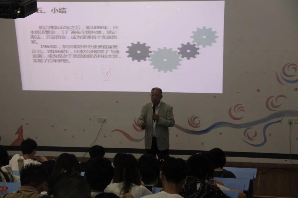 6月28日上午九时三十分,外语学院日语系主任杨剑教授为全院师生作了“福泽谕吉对日本社会的影响”的学术讲座,120余人聆听了讲座。