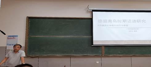 7月16日下午,广东外语外贸大学德语国家研究中心主任刘齐生教授应邀为我校师生做了题为“德据青岛时期话语研究”的讲座。本次讲座由外语学院院长卞建华教授主持,外语学院200余名本科生、研究生和部分教师到场聆听讲座。