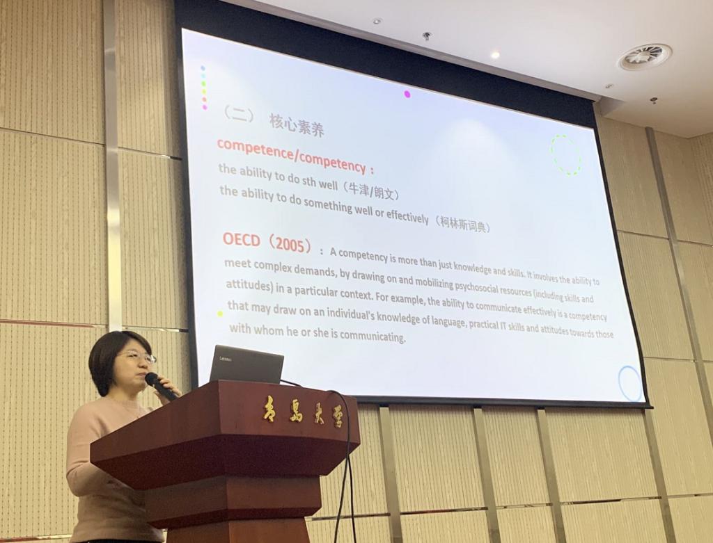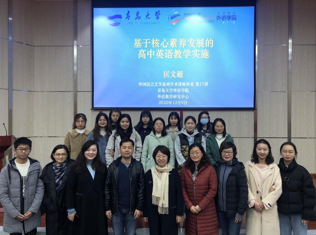 2020年12月9日晚,外语学院英语教育系、外语教育研究中心于青岛大学会议中心305报告厅成功举办了“基于核心素养发展的高中英语教学实施”学术讲座。讲座由青岛市高中教研员匡文超老师主讲,英语教育系主任、外语教育研究中心黄芳教授主持。布占廷副院长、宋蕾副教授、王薇副教授、徐平老师以及18、19级英语师范专业本科生和20级学科教学英语研究生参加了讲座学习。