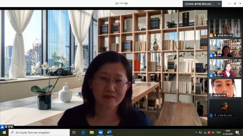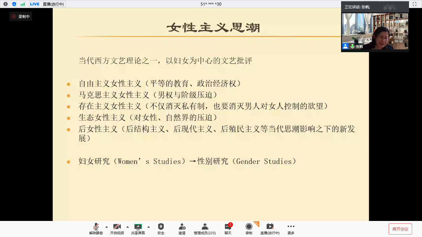 8月31日上午,受青岛大学外语学院邀请,我校德语系94级校友、上海外国语大学博士生导师张帆教授通过腾讯会议为我们带来了“德语女性主义语言学导论”的学术讲座。本次讲座由德语系主任綦甲福教授主持,德语系师生、校友以及来自国内外高校的师生共230余名听众聆听了讲座。