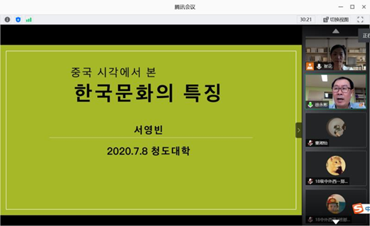 7月8日下午,对外经济贸易大学徐永彬教授应邀为外语学院朝鲜语系师生带来了题为“比较文化学视角下的韩国文化特征”的精彩学术讲座。此次讲座由朝鲜语系主任崔花老师主持,朝鲜语系多位老师以及学生通过腾讯会议参与了本次讲座。