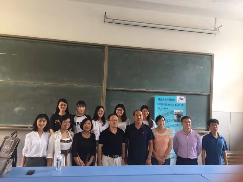 7月9日上午,华东师范大学外语学院德语系主任宋健飞教授受邀在博文楼219教室作题为“德语口译:从概念到实践”的报告。德语系主任綦甲福和刘沁卉老师主持报告会,我院德语系部分老师、全体学生、巴伐利亚州山东代表处代表以及来自中国海洋大学、青岛科技大学和信息工程大学(洛阳校区)的师生共150余人参加。