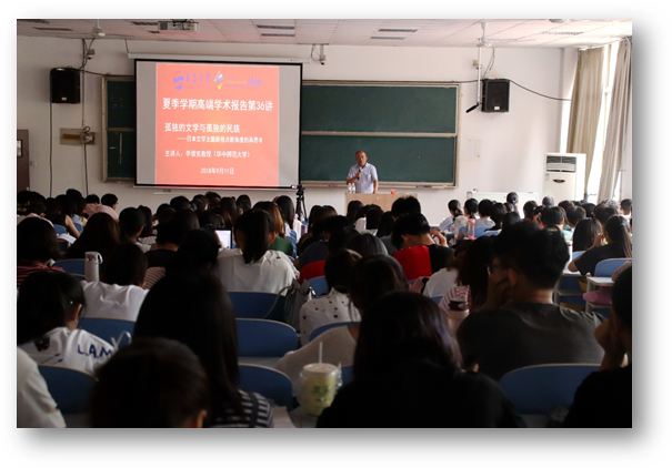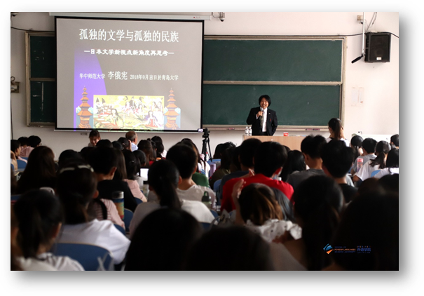9月11日上午,外语学院在博远楼101教室举行夏季学期高端学术讲座第36讲。华中师范大学外国语学院副院长、博士生导师李俄宪教授应邀作“孤独的民族与文学的孤独——日本文学新视点新角度再思考”的高端学术讲座。日语教学系主任杨剑老师主持,外院师生200余人聆听了讲座。
