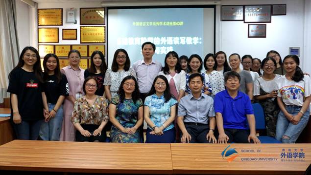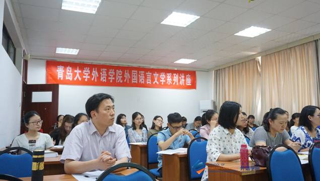 6月21日上午,北京外国语大学国际教育学院的杨鲁新教授做客外国语言文学系列学术讲座,并作题为“基础教育阶段的外语读写教学:理念与实践”的学术报告。院长助理布占廷主持,外语学院师生以及青岛市部分中小学教师代表参加讲座。
