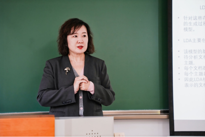 我院外国文学研究中心主任王薇教授主持分论坛汇报并作发言,发言题目为“基于TF-IDF算法和LDA主题模型的美国移民小说主题内涵挖掘与分析”,研讨话题紧扣研究前沿热点,会场气氛热烈,与会学者互动活跃,互有启发。