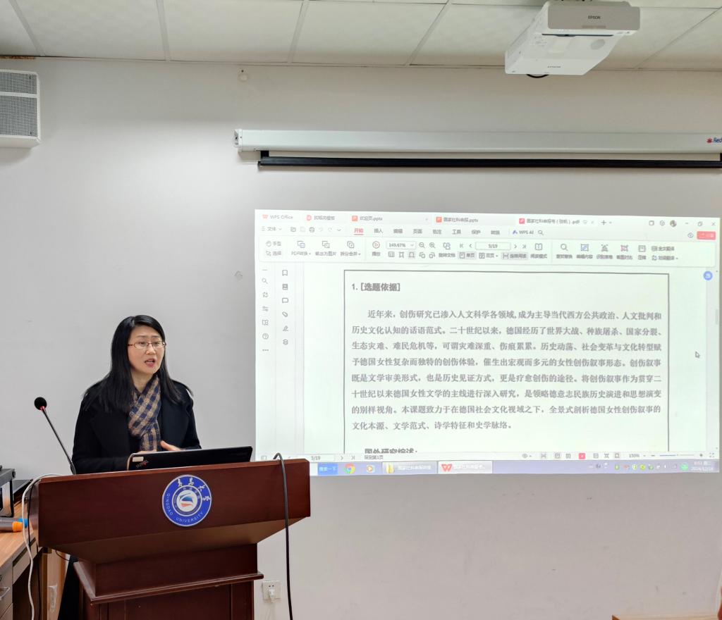 随后,外语学院教师张苗、王芳、张弛、王斐、吴茜、郭潇颖、张宜先、刘惠宇等依次对自己的申报选题进行了简要汇报。张帆教授针对申报题目、研究框架、研究价值、概念界定等方面提供了宝贵的指导建议。