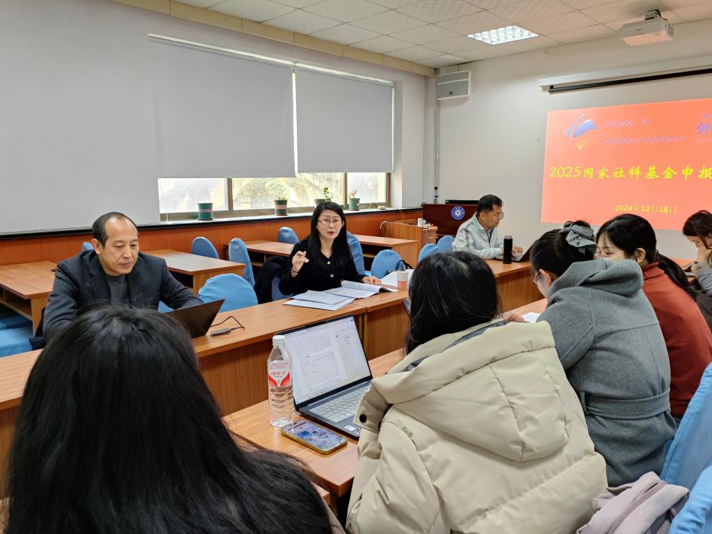 2024年12月18日,外语学院在博文楼312召开了国家社科论证会。上海外国语大学张帆教授应邀出席论证会。外语学院班子成员、中心主任以及科研骨干参会,会议由布占廷副院长主持。