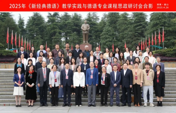 4月25日至28日,由教育部高等学校外指委德语专业教学指导分委员会全国德语教师发展中心主办,湘潭大学与外语教学与研究出版社联合承办的“《新经典德语》教学实践与德语专业课程思政研讨会”在湖南韶山成功举办。我院德语系主任綦甲福教授、副主任王学博副教授受邀参会。