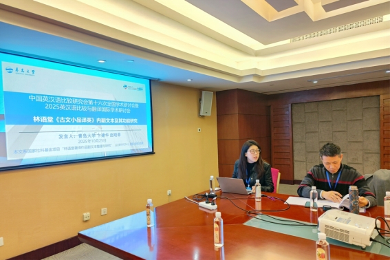 “中国英汉语比较研究会第十六次全国学术研讨会暨2025英汉语比较与翻译学术研讨会”由中国英汉语比较研究会主办,全国新文科教育研究中心、山东大学外国语学院承办。不同研究领域的学者在英汉语言对比、翻译研究及中西文化对比三大板块之下,共同探讨外语学科的时代新使命以及新文科背景下外语学科的交叉融合与实践创新。我院师生积极参与此次学术研讨会,同与会专家学者深入交流最新研究进展,并与我院2022届校友上海大学在读博士贾楠同学见面交流,积极宣传了我院教学与研究成果