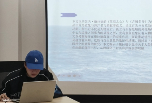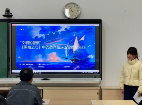 我院2024级英语语言文学专业4名研究生参加分论坛并发言,围绕海洋文学与文化研究的议题展开了深入交流。李慧泉以“康拉德小说中的荒岛意象与海洋书写”为题,揭示康拉德对人类处境、殖民经验与存在焦虑的深层书写。杜春荣以“文明的船骸:《黑暗之心》中的蒸汽船与工具理性失效”为题,探讨技术文明既无法掌控自然,又服务殖民、催生罪恶的本质。赵雨轩以“《勇敢的船长》中鳕鱼捕捞书写的生态解读”为题,揭示吉卜林潜藏的海洋生态危机预警,呈现该时期渔业文明转型中的生态矛盾。刘慧以“《远航》中的觉醒旋律——基于概念隐喻视角下的文体研究”为题,分析文本中音乐元素与女性觉醒主题的隐喻关系。