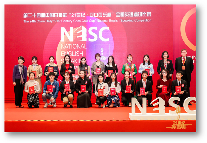 3月21-24日,第二十四届中国日报社“21世纪•可口可乐杯”全国英语演讲比赛全国总决赛在杭州举行。此次比赛由中国日报社与可口可乐大中华区联合主办,二十一世纪英语教育传媒承办,国际英语联合会(ESU)、世界英语教师协会(TESOL)、美国教育考试服务中心(ETS)、英国寄宿学校联盟、香港科技大学、澳门理工学院等学术机构协办。总决赛还邀请了习近平总书记的英文翻译、外交部翻译司培训处处长孙宁,外交部前驻外大使、外交学院和对外经济贸易大学教授任小萍,前中国日报社副总编辑黄庆、北京外国语大学高级翻译学院教授、博士生导师任文等中国英语教学界的重量级人物担任评委。