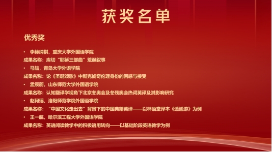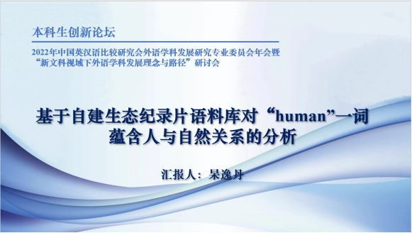 在12月30日下午举行的本科生创新论坛中,来自上海交通大学、南京理工大学、华中科技大学、西安交通大学等高校的29名本科生参加了比赛。选手们就语言学、翻译、外国文学、国别区域等课题展示了自己的研究成果。我院2019级语言大数据专业本科生杲逸丹汇报了“基于自建语料库的生态纪录片中人与自然关系研究”并获得三等奖,指导老师布占廷获“优秀指导教师”称号;2019级英语专业本科生马喆汇报了论文“论《圣诞颂歌》中斯克掳奇伦理身份的困惑与接受”,获得优秀奖。我院获得“优秀组织单位”称号。此次本科生创新论坛经过了前期评审、现场答辩和评委提问三个阶段,共设置一等奖1项、二等奖3项、三等奖5项、优秀奖20项。