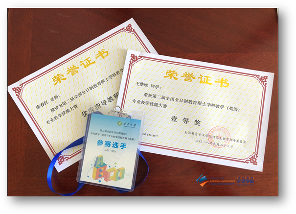 经过赛前认真准备和赛场激烈角逐,在决赛中,我院2017级学科教学(英语)专业硕士研究生王梦姣同学获得一等奖,指导老师廖春红教授获得优秀指导教师称号。这是外院学子在该项目比赛中连续两届获得一等奖。