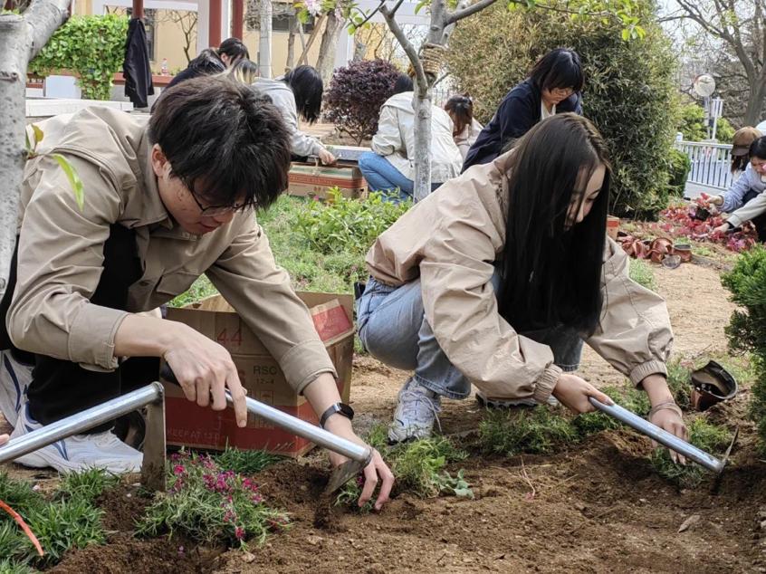 四月青草合,胶澳春水生。在这个生机盎然的仲春时节,为了进一步美化校园环境、提高师生的环保意识,青岛大学外语学院在党委副书记王海青、辅导员刘浩的带领下,于4月19日在浮山校区校园内组织开展了春季栽花种草活动。本次活动得到了广大师生的积极响应和热情参与,共培绿植百余株,为韶园增添了一片新绿。