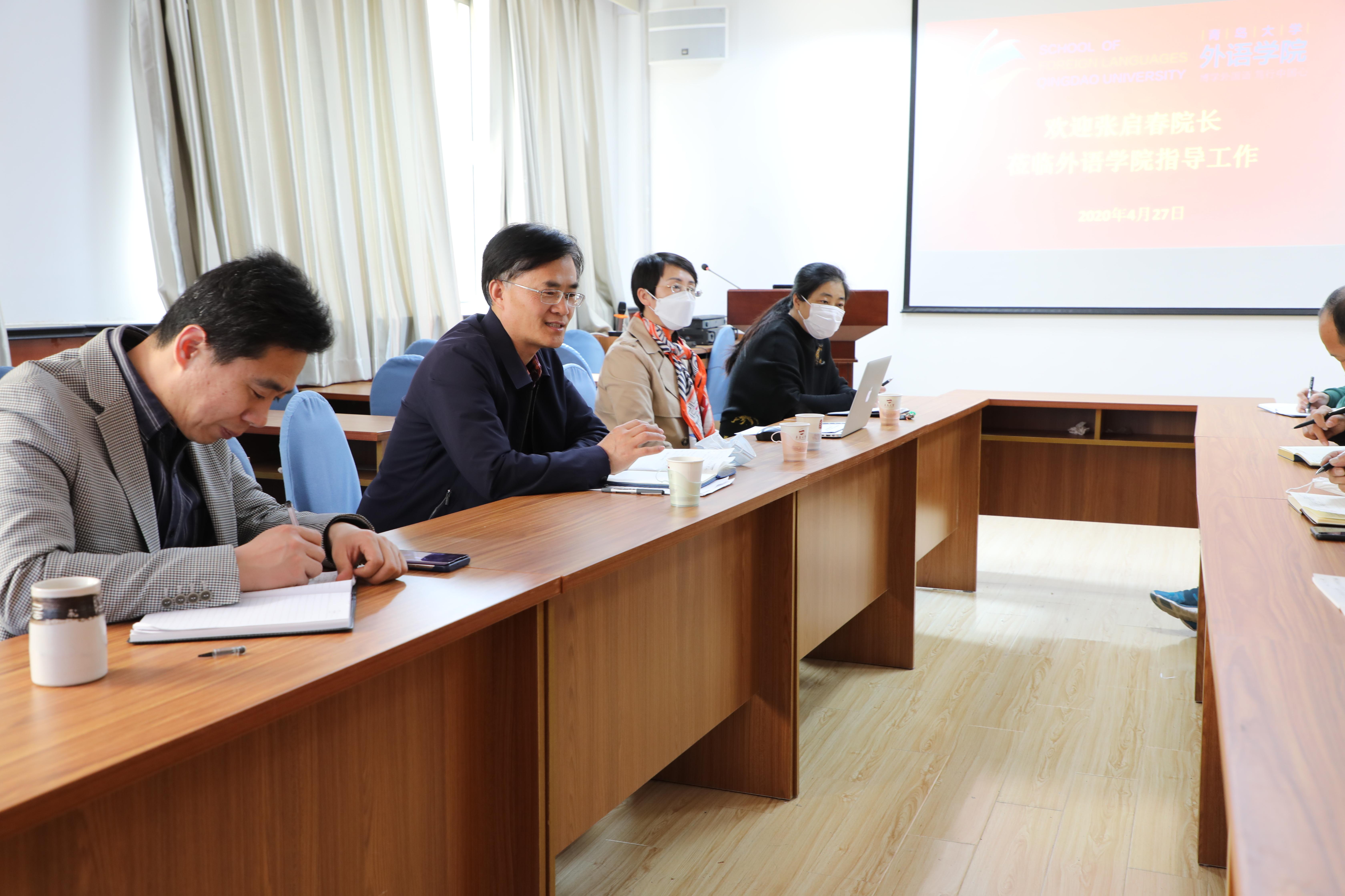 4月27日下午,我校创新创业学院常务副院长张启春来到外语学院,对学院创新创业和学生竞赛工作进行了调研指导。会议由外语学院院长卞建华主持,学院党委书记王传永、党委副书记王海青、副院长娄永强和部分系主任、辅导员及相关老师参会。