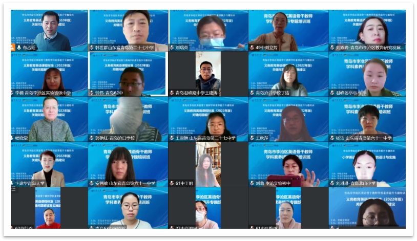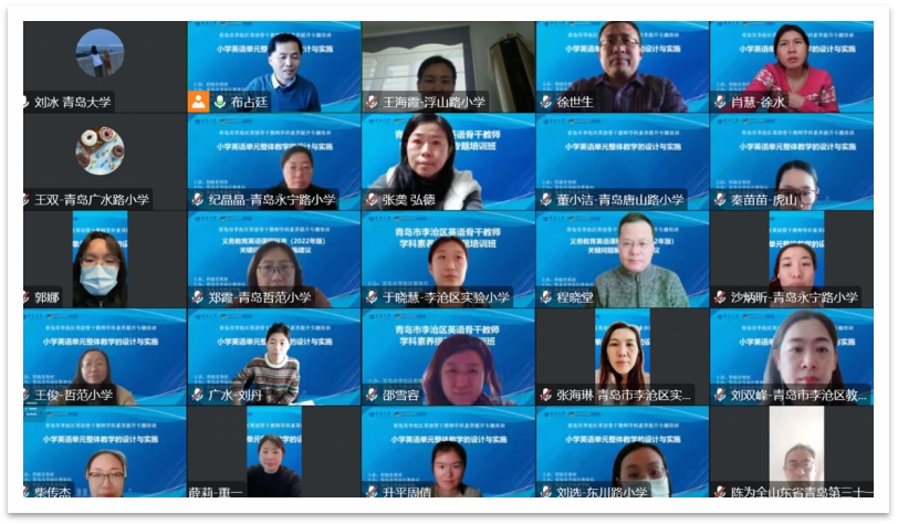 2022年12月18日,由李沧区教体局主办、青岛大学外语学院承办的李沧区英语骨干教师学科素养提升专题培训活动再次开班,特邀北京师范大学程晓堂教授莅临讲座,并与学员互动。两场讲座分别由外语学院卞建华院长和布占廷副院长主持,李沧区教体局近400名初中英语和小学英语骨干教师相聚云端,聆听专家讲座,并与专家积极互动。