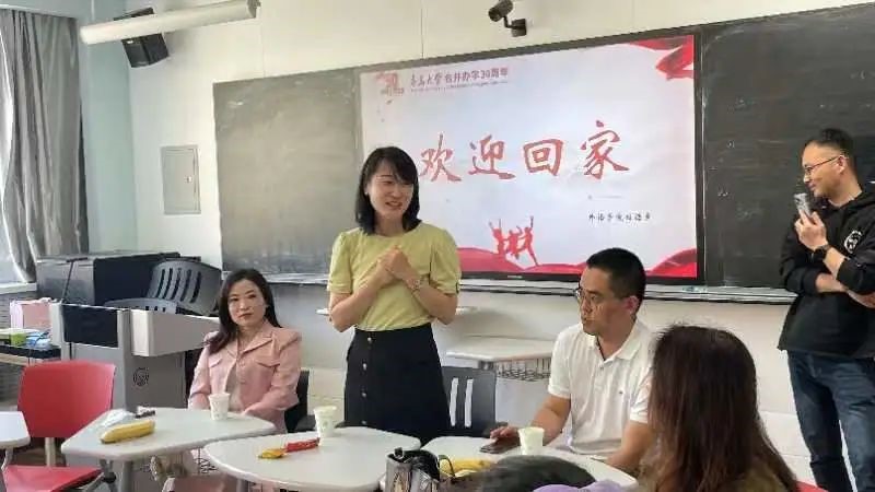 吕云副主任代表英语系全体教师欢迎各位校友返校,并对近年来英语系的发展与成绩作以简单介绍。校友们回忆了在青大的学习生活和深厚师生情谊。座谈会现场气氛温馨,大家感恩老师们当年的谆谆教导,叮嘱在校同学们要珍惜时光,勤思好学。