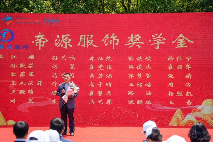 外院精神代代传,朋辈携手当奋进,两位96级日语系校友:招远帝源服饰有限公司总经理李永胜和青岛依美时尚国际贸易有限公司董事长刘伟,分别创立“帝源服饰奖学金”、“依美时尚奖教金”并到场颁发,以鼓励外院学子继续砥砺深耕,致敬外院老师德馨育人的高尚风范!