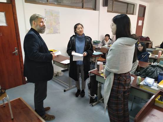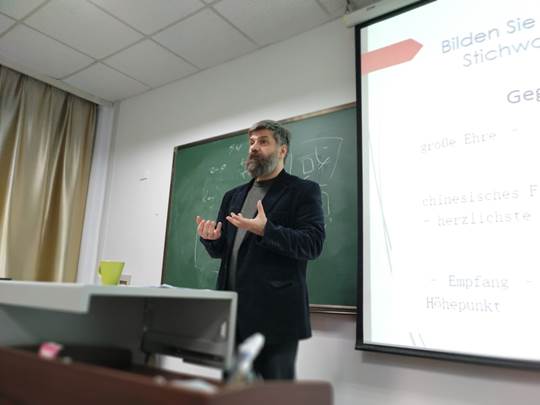 12月2日到3日,在青岛大学—慕尼黑应用语言大学欧盟“伊拉斯谟+”项目(Erasmus+)框架内,慕尼黑应用语言大学口译系系主任李克教授(Prof. Dr. Patrick Kühnel)来到外语学院,为德语专业同学进行了为期两天、共八课时的口译授课。德语系本科三、四年级及硕士研究生共50余名同学参加了学习。