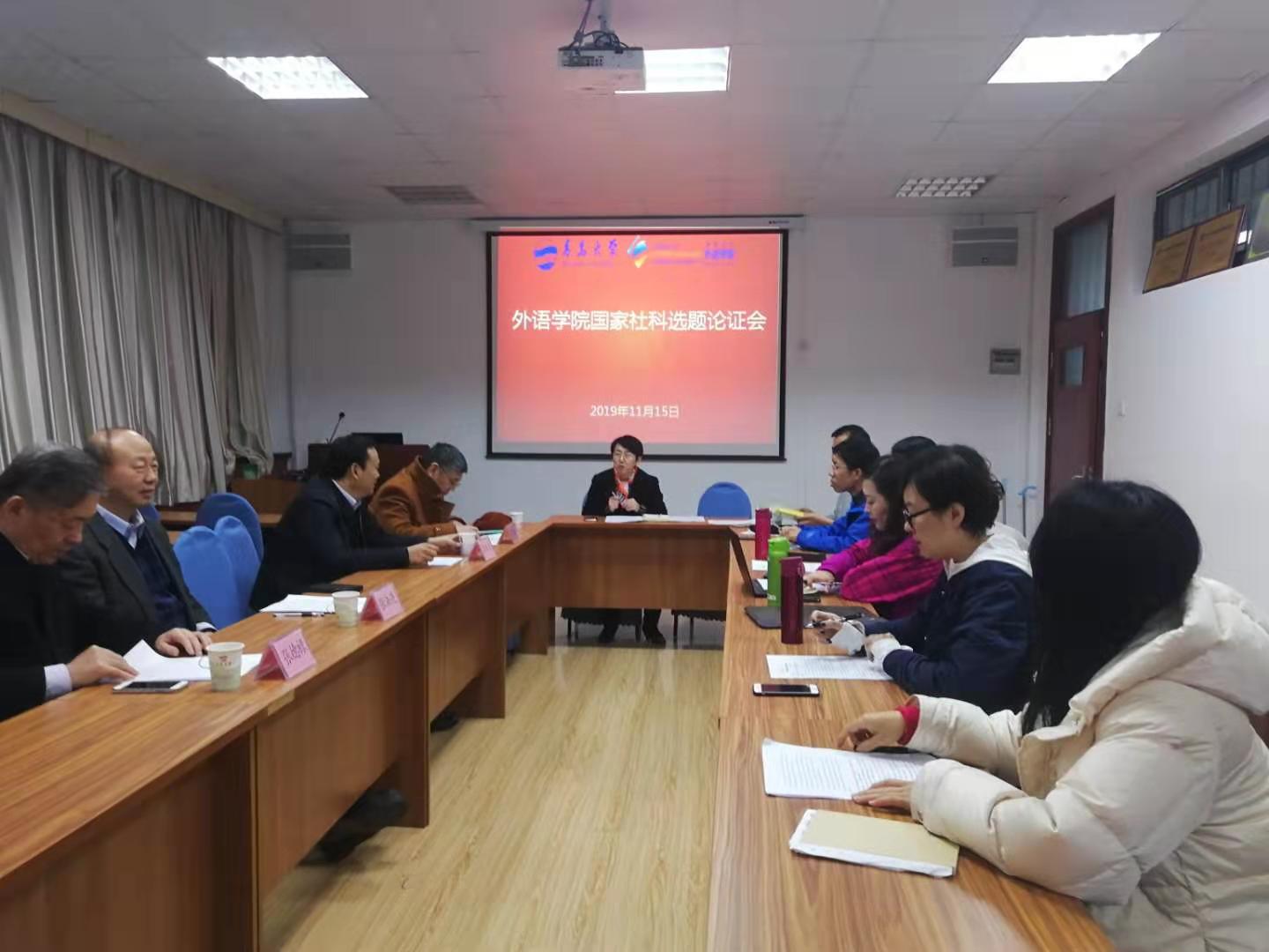 11月15日晚,我院2020国家社科基金项目选题论证会在博文楼312举行,邀请专家有:全国话语语言学研究会会长、中国传媒大学博士生导师李佐文教授;同济大学博士生导师张德禄教授、华东师范大学博士生导师何刚教授、中国政法大学博士生导师张法连教授。论证会由卞建华院长主持。