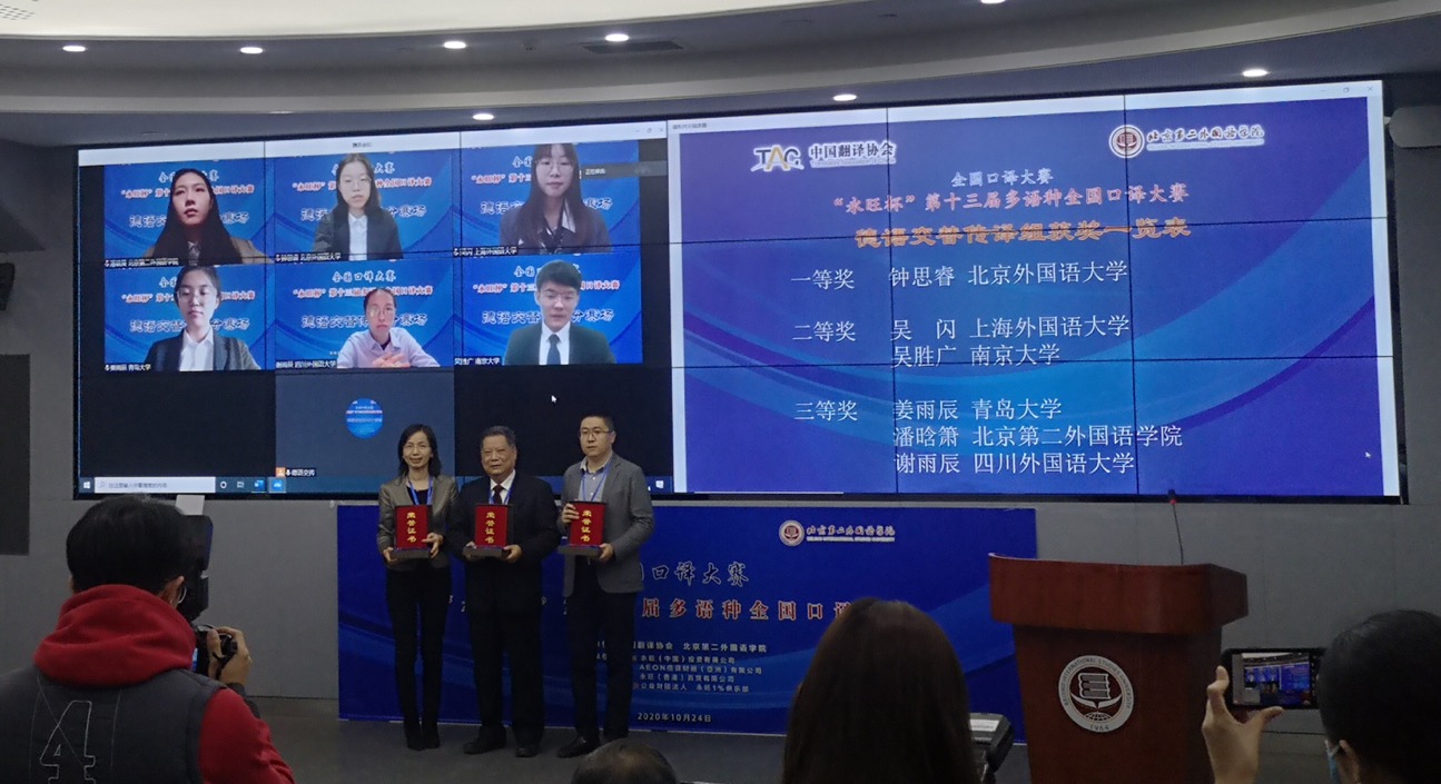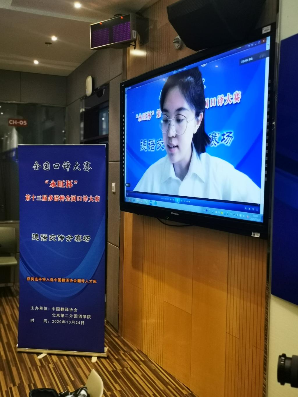 大赛共分为初赛、复赛、决赛三个环节。经9月15日全国范围的初赛选拔后,姜雨辰顺利进入10月24日上午举行的复赛,与来自全国高校德语专业的13位选手同场竞技。由于新冠疫情,此次大赛的复赛和决赛均采用线上比赛、现场评审的方式举行。复赛历时4个多小时,于24日中午12点半结束,共有6位选手进入当日下午的决赛。经过激烈角逐,姜雨辰最终获得第四名,与来自北京第二外国语学院、四川外国语大学的选手获得德语交传组三等奖的佳绩。来自北京外国语大学、上海外国语大学、南京大学的三位选手分获一、二等奖。