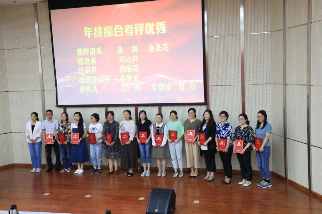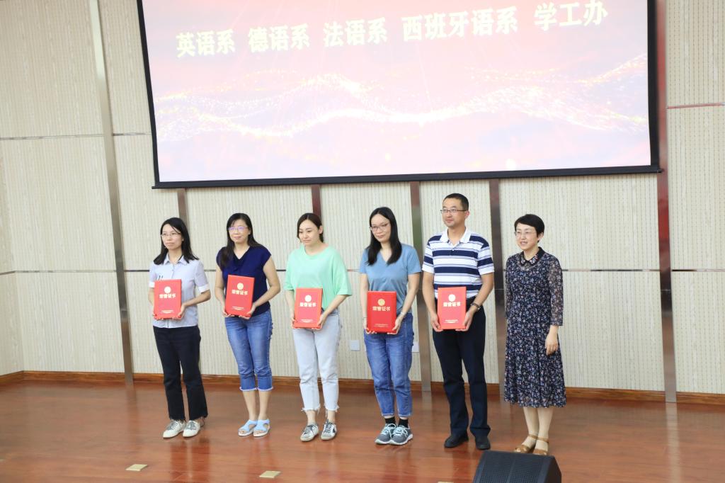 院党委副书记王海青宣读了《外语学院关于表彰2019年度工作先进集体和先进个人的决定》,对英语系等5个工作先进集体,王薇等19名综合考核优秀个人,马一凡等23名工作先进个人和王乐等6名优秀共产党员进行表彰奖励。