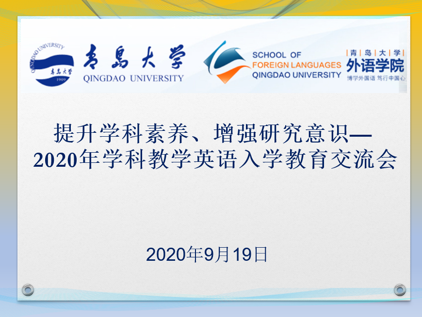 9月19日,青岛大学外语学院召开了2020级学科教学(英语)硕士生入学教育交流会,此次会议的主题是“提升学科素养、增强研究意识”。硕士生导师娄永强、布占廷、黄芳、宋蕾、王乐、王薇、张弛,以及学科教学英语20级全日制及非全日制研究生参加了此次入学教育交流会。会议由英语教育系主任、学科教学英语负责人黄芳主持。