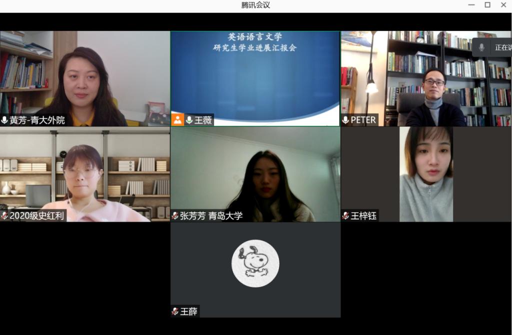 2021年1月13日下午,外语学院英语语言文学学科采用线上、线下相结合的方式,举办研究生学业进展汇报交流会。线下师生齐聚博文楼312会议室,线上师生则利用腾讯会议相聚云端。本次汇报交流会由英语语言文学学科负责人王薇老师主持,冯冬副教授、孟宪华副教授、黄芳教授及本学科三个年级研究生参加。
