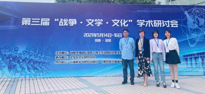 近日,外语学院英语语言文学专业多名教师和硕士研究生受邀参加多场学术研讨会并作学术交流。在5月14日至16日举行的第三届“战争·文学·文化”学术研讨会上,王薛、杨兴隆、王梓钰三名研究生在王薇副教授的带领下,就各自研究方向进行发言,得到了参会专家学者的指导和鼓励。