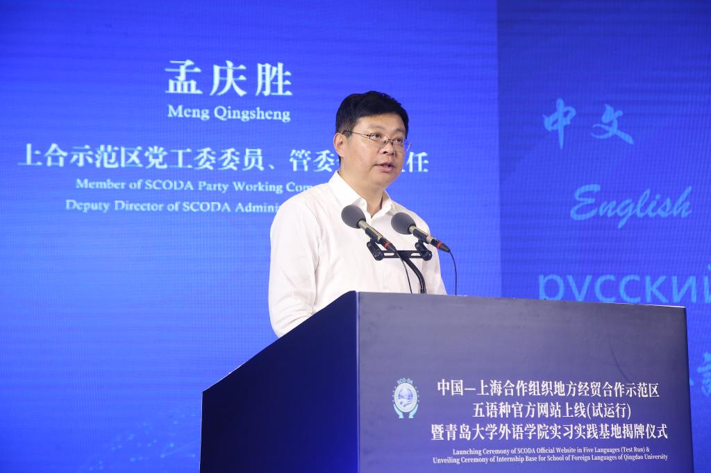 孟庆胜在致辞中指出,上合示范区网站面向以上合组织相关国家为主的全球用户,采用中、俄、英、日、韩五种语言,权威发布上合示范区动态新闻,覆盖了“一带一路”沿线大部分国家和地区,是上合示范区扩大对外开放、展示对外形象、提高国际影响的重要平台。