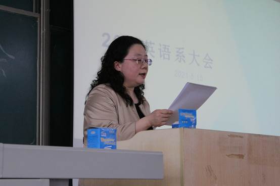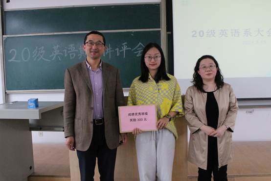 5月15日下午,外语学院英语系在金家岭校区西院二教209教室召开2020级期中教学讲评会暨配音大赛表彰会。英语系主任邢富坤、副主任吕云、第一教研室刘晓燕和张驰老师、2017级孙铭辰和2018级马滢同学以及2020级全体同学参会,会议由吕云副主任主持。