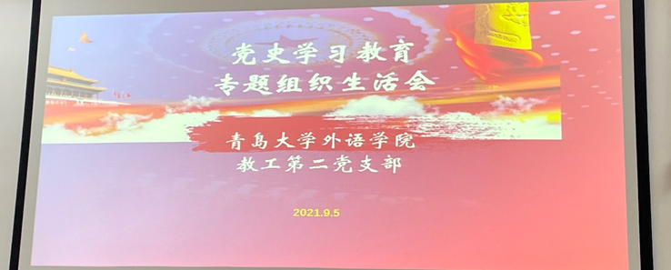 2021年9月5日,外语学院教工第二党支部全体党员在博文楼312召开党史学习教育专题组织生活会。会议邀请外语学院王海青书记现场指导。本次党史学习教育专题组织生活会共分为三部分:第一部分由教工第二党支部书记崔花对2021年上半年教工第二党支部党史学习教育情况进行总结。第二部分由支部各党员对自身党史学习情况进行总结汇报。第三部分是党员相互批评意见及王海青书记现场指导。