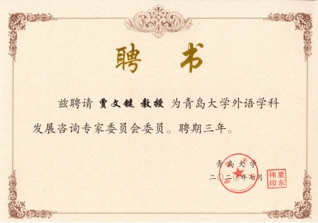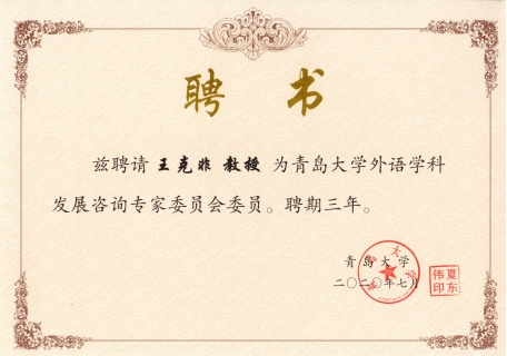 为进一步推动我校外语学科快速发展,提升外语学院教学、科研整体水平,外语学院近日聘请北京外国语大学王克非教授、北京外国语大学贾文键教授、广东外语外贸大学黄忠廉教授、上海交通大学彭青龙教授、西南大学文旭教授为我校外语学科发展咨询专家委员会委员。
