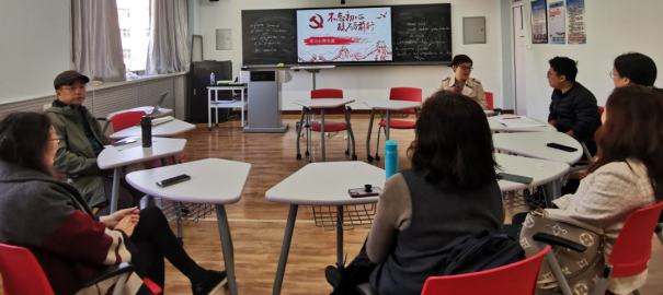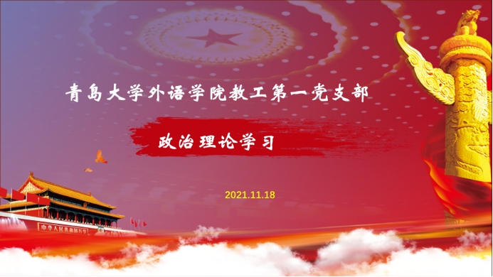 2021年11月18日下午,青岛大学外语学院教工第一党支部在博文楼413进行政治理论学习交流会,本次学习交流会集中学习了《习近平总书记给北外老教授的回信》、《习近平在中共中央政治局第三十次集体学习的讲话》和《十九届六中全会公报》。会议由教工第一党支部书记王薇同志主持,外语学院教工第一党支部党员参加此次会议。