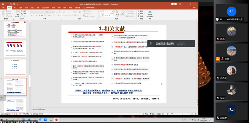 5月19日下午,外语学院朝鲜语系利用腾讯会议召开了近期工作交流会。会议由系主任崔花主持,朝鲜语系全体教师参加了会议。