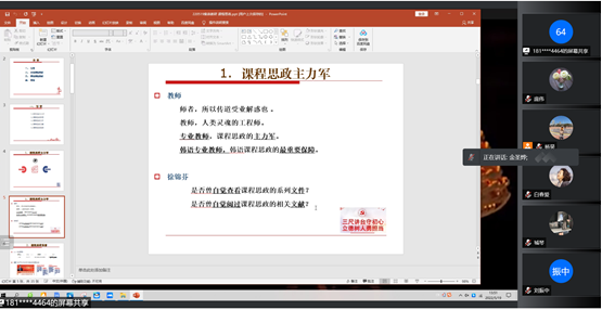 接下来,我系开展了有关“课程思政”建设的教研活动,由金圣花老师为老师们做了专题讲座,金圣花老师主持国家社科基金中华学术外译项目、山东省专业学位研究生教学案例库项目,省级大学生创新训练等各级项目。金老师从课程思政的大背景谈起,溯源了课程思政的各级文件,从外语课程思政特别是韩国语课程思政上梳理了目前的相关研究方向,在课程思政的落实方法上,金老师提出了几个建设性意见,如建立健全优质资源共享机制,将课程思政建设要求和内容纳入教师岗前培训,建立课程思政集体教研制度等,向老师们分享了宝贵的内容和经验。