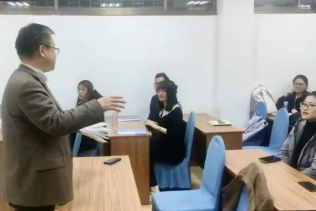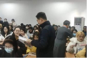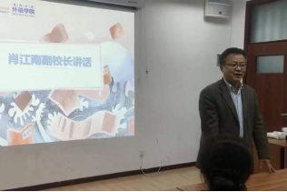 2021年12月17日下午,外语学院在博文楼312室举行“‘研’途送温暖”考研助力活动。校党委常委、副校长肖江南出席活动并送祝福,外语学院党委书记王传永、院长卞建华、党委副书记王海青、2018级本科生辅导员寇磊、徐富萍以及60余名考研学生代表参与了活动。