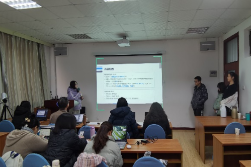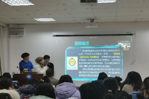 2021年12月28日下午,英语系2019级英语大数据创新班同学于博文楼312会议室举行《语言处理技术应用》课程项目报告会,报告会由课程负责人邢富坤老师主持,浙江财经大学熊建国老师、重庆外语外事学院杨艳丽老师应邀线上参加报告会,外语学院院长助理曹杉老师、英语教育系主任黄芳老师现场参会并点评指导。2020级英语大数据创新班同学现场参加报告会。