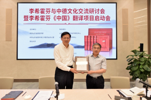 为进一步推动我省与德国的交往合作,近日,由省委宣传部、省委外办、青岛大学共同主办的“李希霍芬与中德文化交流研讨会暨李希霍芬《中国》翻译项目启动会”以线上线下相结合的方式顺利召开。校党委书记胡金焱带队参会。