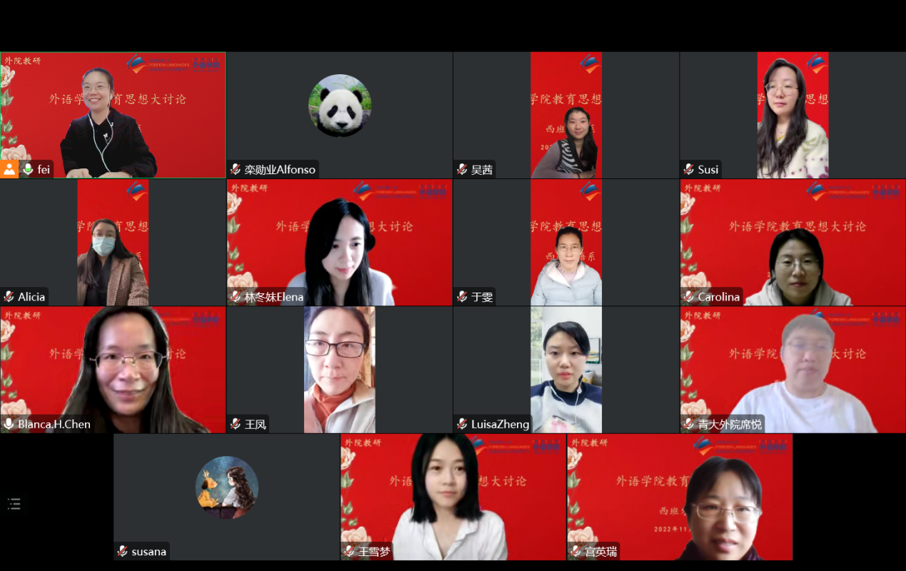 娄永强副院长参加英语系与英语教育系的教育思想讨论会,会议以线上线下相结合的方式展开,两系的全体教师参加会议。娄院长带领教师学习了一系列人才培养与教学改革的文件。他强调,教学要保证与国家社会发展相适应,明确课程专业培养目标;应注重将思政教育落实到课堂中;在课堂教学中,应促进信息技术与教学相融合;注重实践教学对人才培养具有重要性,让学生将在课堂中学到的知识技能运用到实践中;注重教学成效,注重考核改革,进行全过程学业评价,切实体现教师的测评素养;注重学科竞赛,以成果产出导向,使创新创业教育常态化、制度化。同时,注重深化教学方式改革,发展基于团队、问题、案例的教学,促进学生主动学习,将传统课堂教学与探究式教学有机结合。接着,参会教师就课程考核等问题展开了激烈的讨论,并就一些问题达成共识。